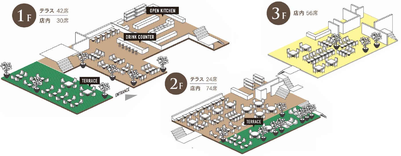 ビル一棟丸ごと約200坪リノベーションした、都会のど真ん中で緑感じる大型レストラン