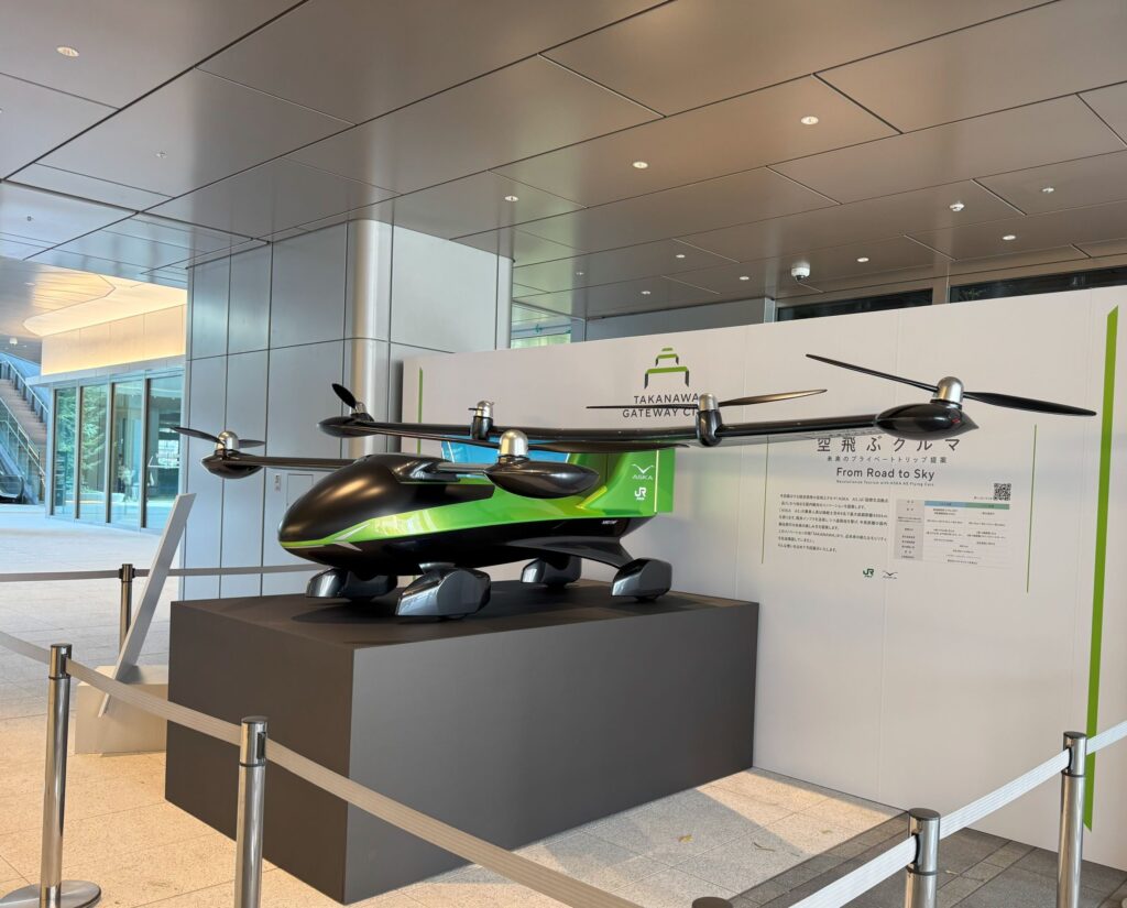 自動走行していたのは、警備ロボット、清掃ロボット、デリバリーロボット。これらは、街全体の情報を蓄積するデータ基盤とロボットプラットフォームが連携して走っています。また、2028年商用開始を目指す、空飛ぶ車の3分の1のモップアップが展示されているほか、無料のAR体験プログラムなどもあります。