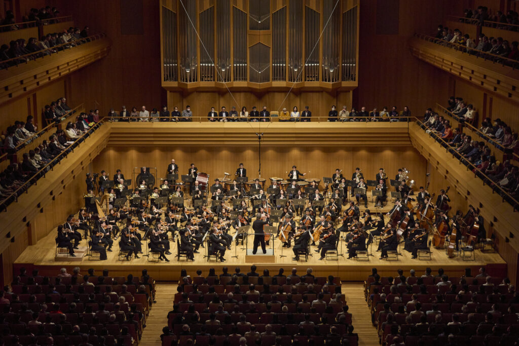 東京フィルと、韓国のKBS交響楽団が一つになって演奏します。舞台が重く見えるほど、大勢がのっての演奏です。