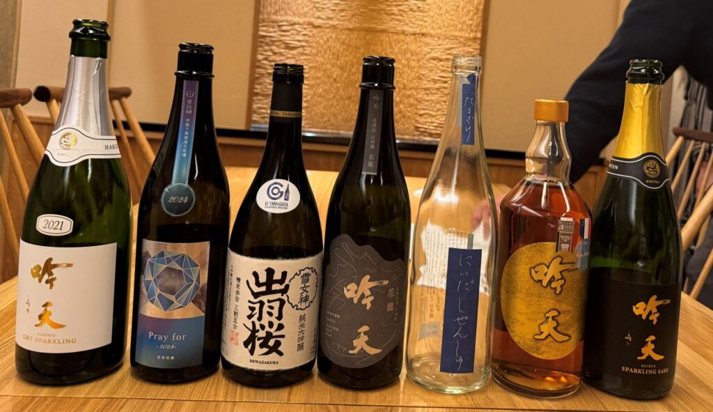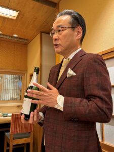 小田切さん主催の「吟天グルメの会」がこのたび10周年を迎え2025年12月9日に記念の会を催しました。小田切さんは「『吟天グルメの会』は10周年、『吟天』ブランドは7周年になりました。自信を持って『吟天』を飲食店にお勧めしても、何の後ろ盾もない日本酒はテイスティングさえしていただけない状態でした。そこで、3年前から国内外のコンテストへ出品し、これまで各酒合わせて32賞いただきました。本日は、そういうお酒もお出ししてきます」とご挨拶されました。