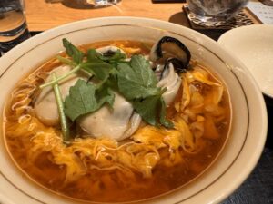 「かきそば」は季節の一品です。大きなプリプリの牡蠣が2つも入っています。お蕎麦は「手打ちそば 汐見」の自家製粉で手打ちの十割。群馬県赤城産のそばの実にこだわり、その日出す分だけを手打ちしています。最後まで心のこもったお料理を頂きました。