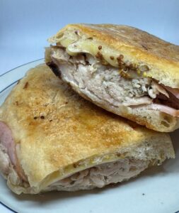 どこも大行列なので、覚悟を決めて、どこのお店に並ぶか狙いを定めます。まずは、キューバサンド世界一に輝いた「PAN」。私は映画「シェフ 三ツ星フードトラック始めました」を見てからどうしてもキューバサンドが食べたくて、映画の中のレシピを見て、たまに家で作ってたべるほど。そこで2024年に世界一に選ばれた「PAN」の蒲田のキューバサンド(1400円)をまず、頂きました。映画のレシピは、オレンジの皮やジュースを使ってお肉を漬けこむのですが、こちらもフルーツの香りや味がします。