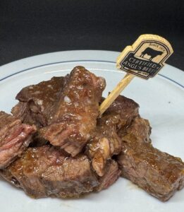ふと見ると、入場した時にお店の人が誰もいなかった「認定アンガスビーフ™(CertifiedAngus Beef)」の店で「US CAB認定極上ハラミステーキ」(1500円)を売っているではありませんか。アメリカを代表するプレミアムビーフブランド「認定アンガスビーフ™」です。