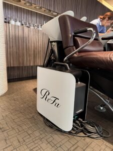 今回、さまざまなリファのアイテムを体験させていただきました。まず頭皮診断をして、そしてサロンでしか味わえないウルトラファインバブル発生器「ReFa ULTRA FINE BUBBLE VEENA(リファウルトラファインバブル ヴィーナ)」を使って頭皮と髪の汚れをしっかり落とし、髪を「素髪(すがみ)」に戻します。続いて髪が持つ元々のポテンシャルを高める泡シャンプー「ReFa BEAUTECH SHAMPOO(リファビューテックシャンプー)」をして、「ReFa BEAUTECH DRYER BX W(リファビューテック ドライヤー BX W)」で髪を乾かし、頭皮診断で変化をチェックしたら、「ReFa STRAIGHT IRON PRO+」でヘアセットして終了です。