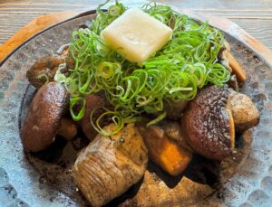 名物の「地鶏の炭火焼」の秋限定メニューとして「秋の地鶏炭火焼 大杉椎茸バター醤油」(1958円税込)は、濃厚なバターが絡みます。宮崎県の大杉しいたけ園が育てる肉厚の「大杉椎茸のサクサクフリット」(748円税込)、など10品。