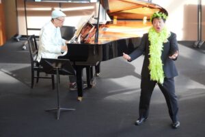 「パン」(牧神)パンというと、すぐに「魔笛」を思い出しますが、生まれた時にひげが生えていて、けむくじゃらで、足がヤク。大笑いをして皆を驚かせるので「パニック」という言葉の元になっています。神様ではありますが、あまり力がありません。青島先生は、パパゲーノと関係があるのではないかと思っているのだと、その根拠などもお話しいただきました。パンが森の中でパパゲーノを育てたのではないだろうかということでした。『私は鳥刺し』『恋人か女房が』で男澤さん大活躍です。