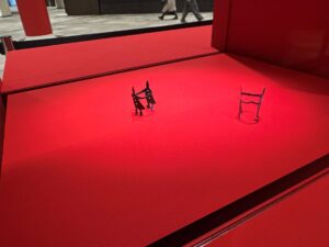 館内にもクリスマスがあふれています。神谷町の駅を降りて麻布台ヒルズに入ったすぐの駅前広場に、赤いゲートのようなものができています。ここに立ち止まって覗いてみてください。人や星、ツリーやトナカイの形をした紙製のキャラクターが、潜んだり、音楽に合わせるように踊ったりしています。六本木ヒルズ、麻布台ヒルズ、虎ノ門ヒルズ、表参道ヒルズ、アークヒルズの5つのヒルズを連動したCHRISTMAS HILLS 2025のキービジュアルのモチーフ、「くるり子」です。扉を開けると潜んでいたり、引き出しの中にもいたり。小さい紙でできた「くるり子」が、振動でくるくると回っています。