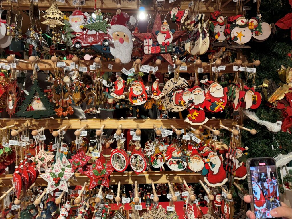 アーチの正面に見えるのは、ドイツのクリスマス用品専門店「ケーテ・ウォルファルト」。否が応でもクリスマス気分が盛り上がります。長居をするとドンドン買ってしまいそう。そのほかにも、可愛いクリスマス雑貨を扱う店が出店しています。